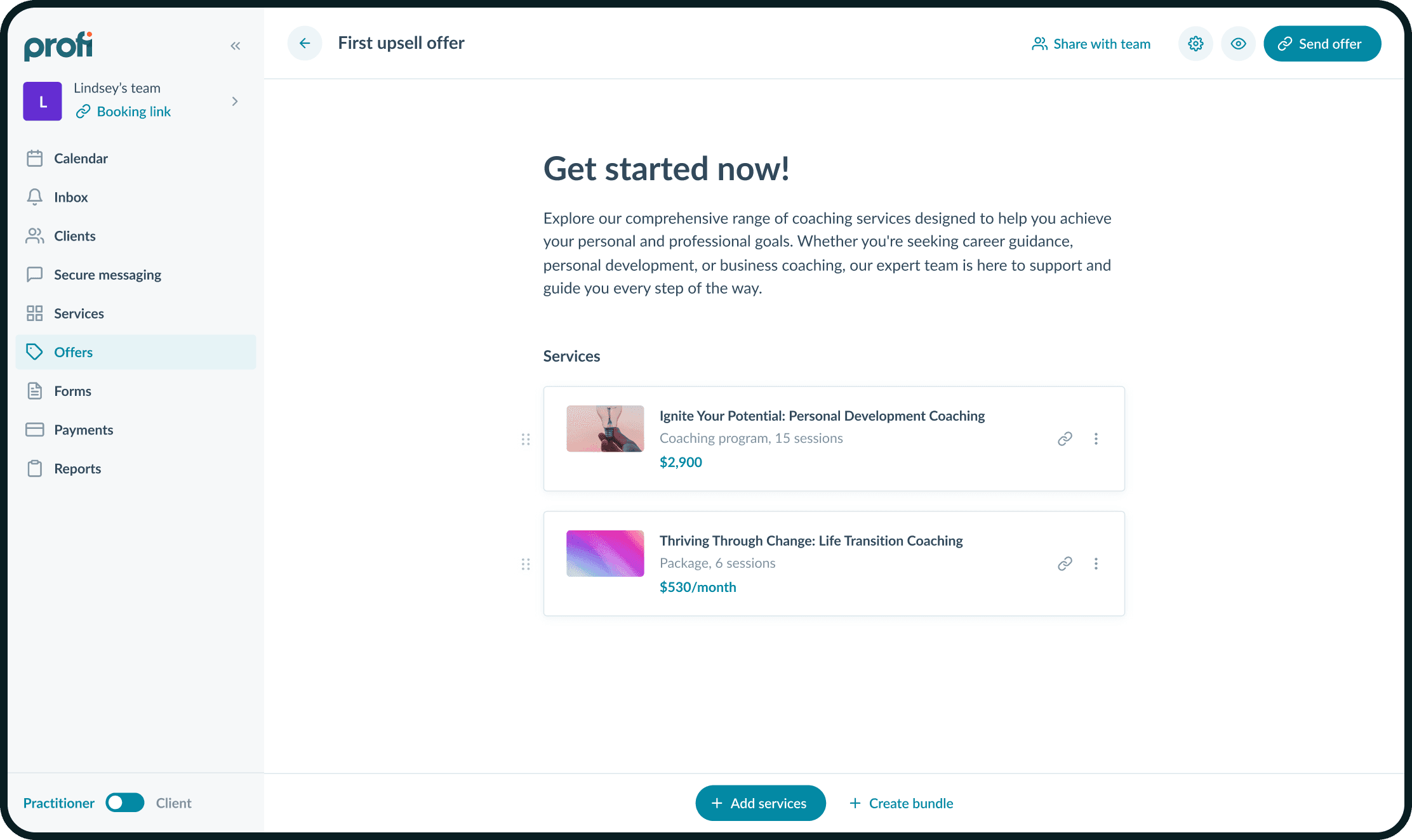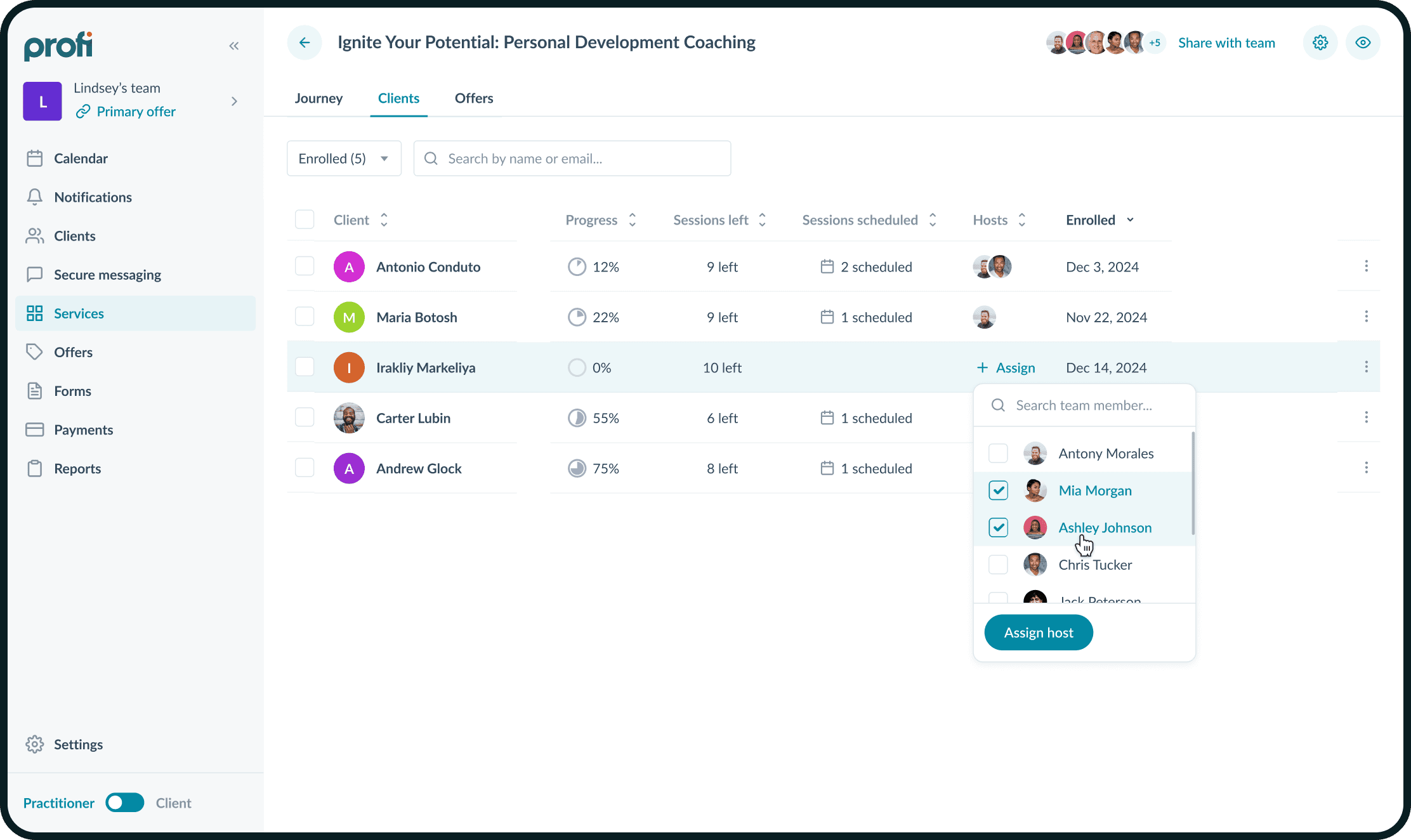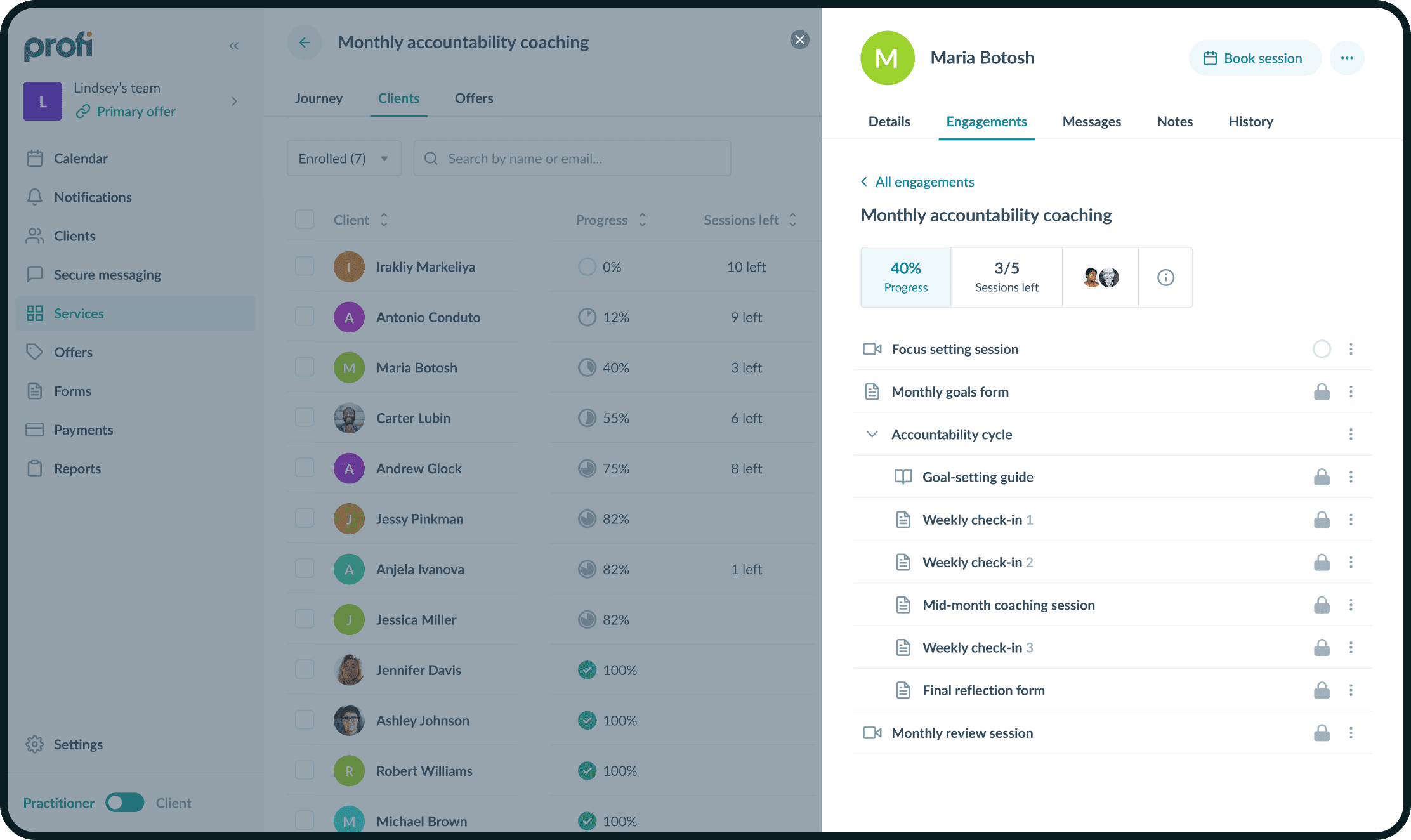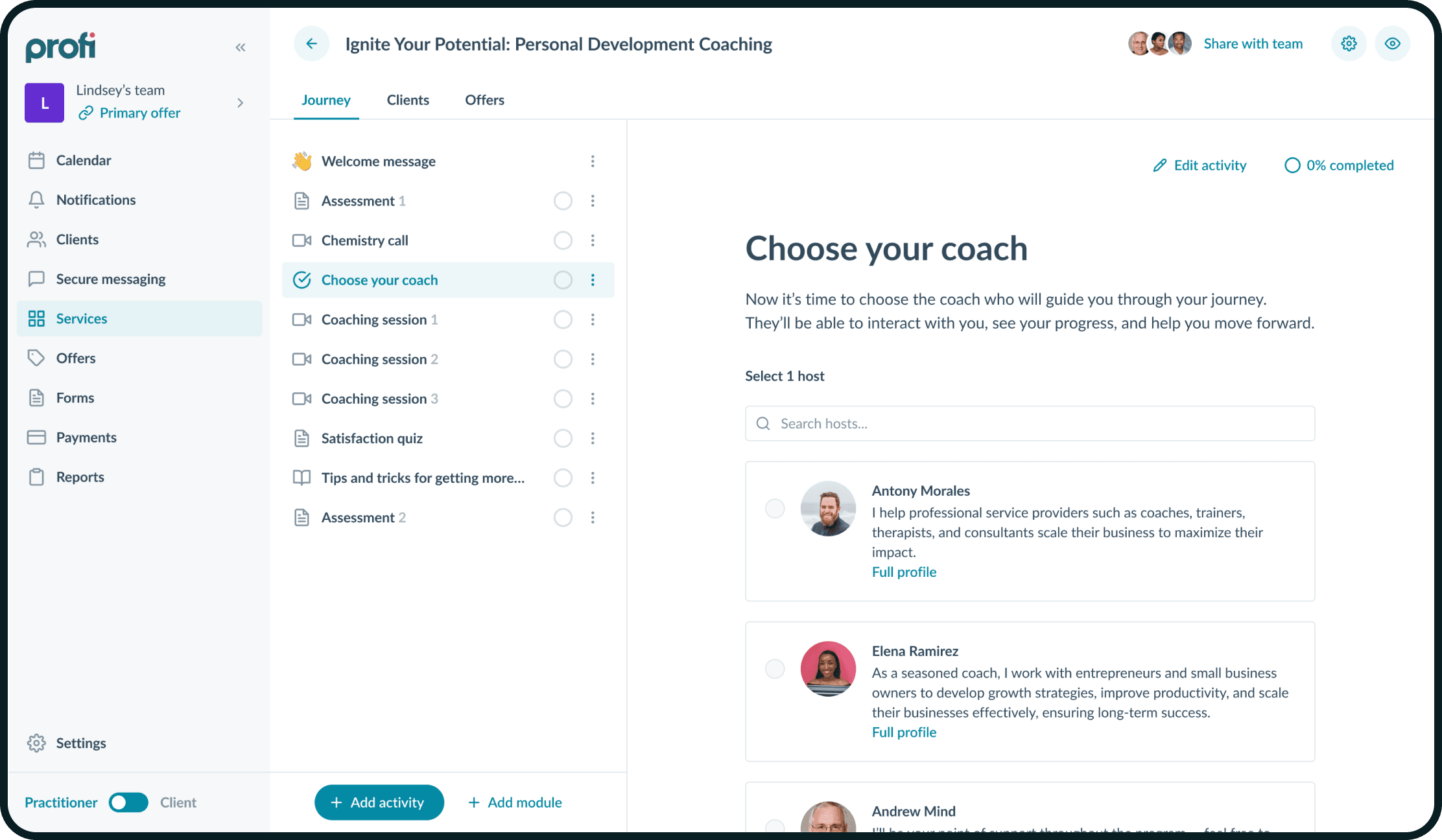 Profi — американский стартап, который помогает коучам работать с клиентами.