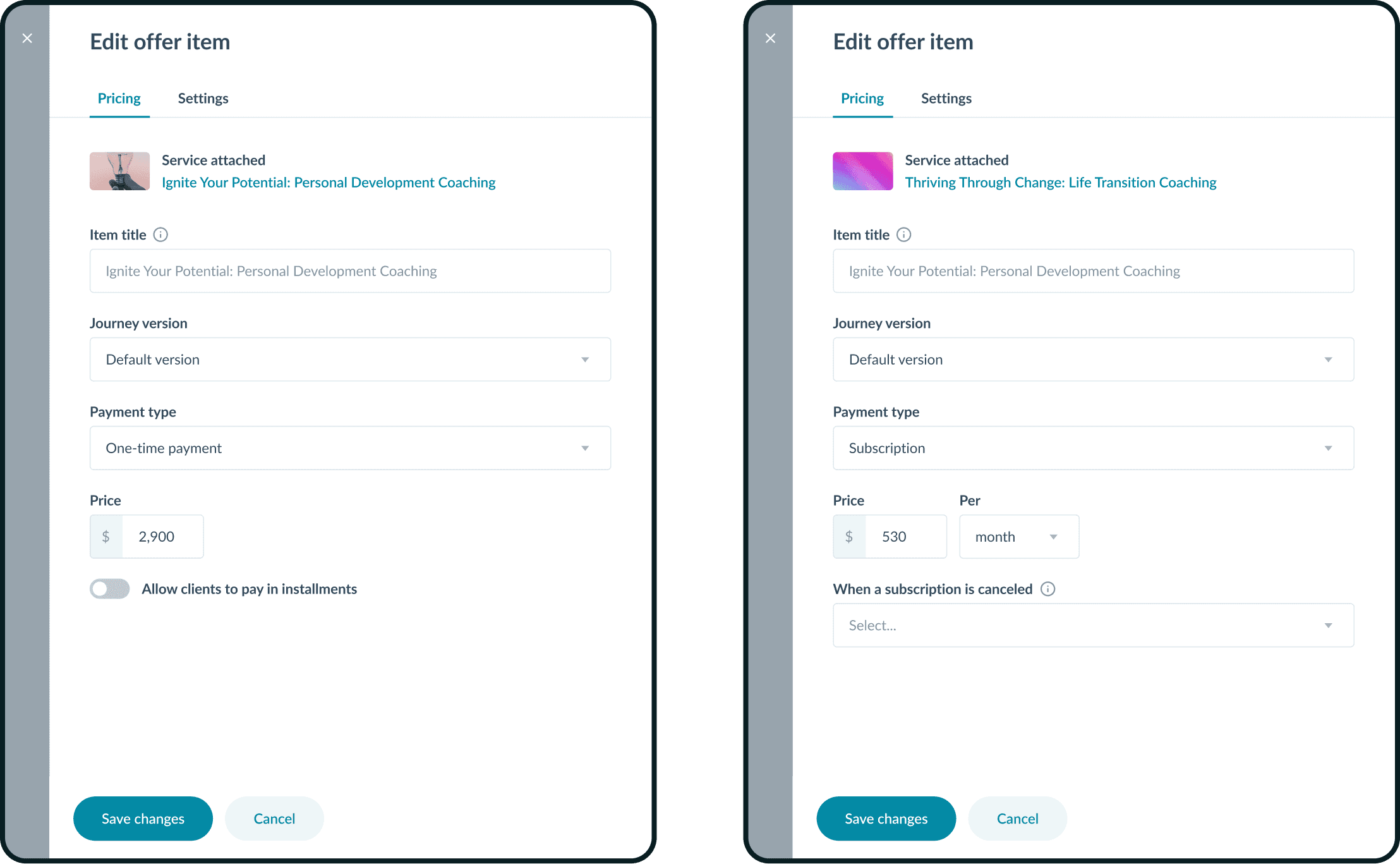 Структура услуги, его цена и назначенный коуч были жёстко привязаны к сервису. Любые изменения — другой специалист, новая цена или дополнительные шаги — требовали создания копий сервиса или отправки материалов отдельно.